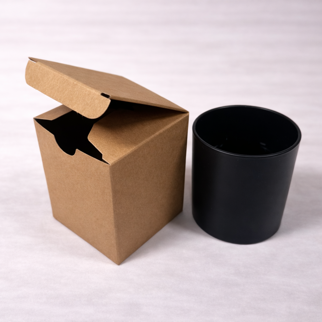 20cl candle box made from a Kraft FSC certified 380gsm folding box board.